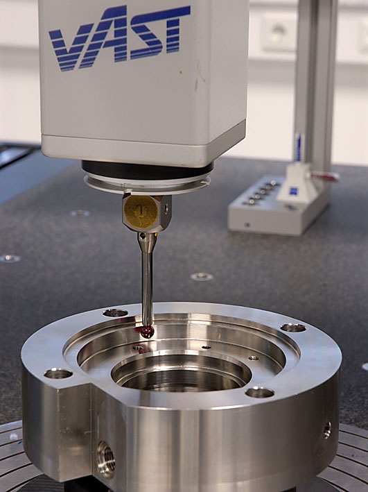 Alle KMG sind in einem klimatisierten Messraum mit überwachten Umgebungsbedingungen untergebracht. Die Einhaltung der Gerätespezifikation wird durch regelmäßige Prüfungen von CARL ZEISS verifiziert. Zusätzlich werden von uns regelmäßige Prüfungen entsprechend DIN EN ISO 10360 mit DAkkS-DKD-kalibrierten Referenznormalen vorgenommen. Damit erfüllen wir die gerätetechnische Voraussetzung für geringe Messunsicherheiten.